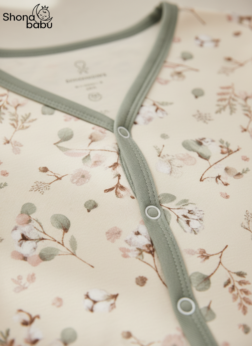 👶 Ideal for: 6 month to 3 years🎨 Color: Cream with pastel floral print and sage green edges💤 Fabric Weight: 220 GSM (Premium Interlock Knit)